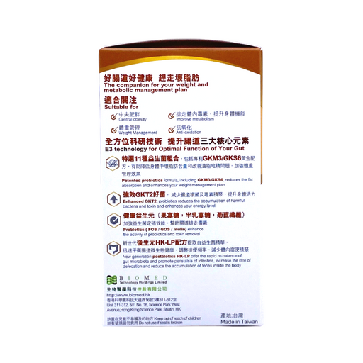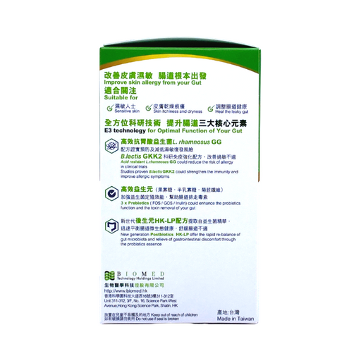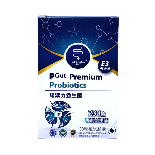 P-GUT 準腸康優點全方位E3元素(益生菌、益生元、後生元)專利益生菌配方 GKM3 / GKS611種高效抗胃酸益生菌配方通過重金屬/塑化劑食品級安全測試寡糖益生元 FOS/GOS 提升益生菌效果天然菊苣纖維Inulin幫助腸道蠕動,排出毒素後生元 HK-LP 配方每粒含 250億活性益生菌無添加香料/人造...
